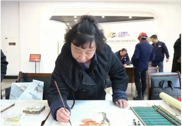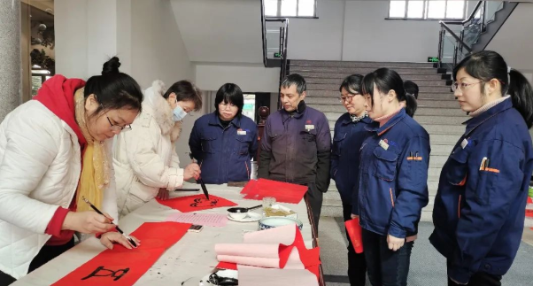 此次活動,公司邀請了來自市書法協會的書法老師們蒞臨現場,展示書法藝術精髓,弘揚中國特色的傳統民間文化。“春風浩蕩展鴻圖、虎步奔騰開勝景”、“茶緣廣裕業有孚、新程奮進正當時”......老師們妙筆生花,一對對喜氣的虎年春聯、年畫,烘托出濃濃年味;一句句美好的祝福,伴著墨香暖人心扉。上洋家人們趁工作休息間隙紛紛前來挑選心儀的虎年春聯、年畫,與老師們合影留念,現場一片溫馨祥和的喜慶氣氛。